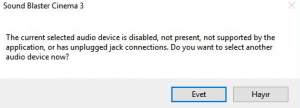 Sound blaster cinema audio device is disabled hatası çözümü
